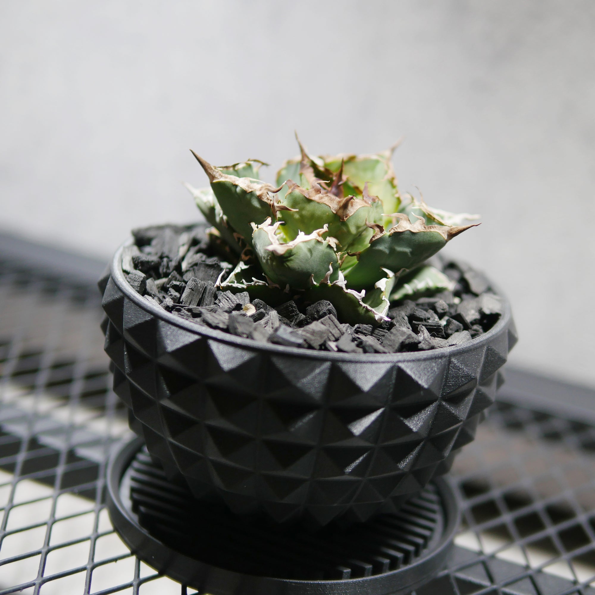 アガベ チタノタ シーザー POT STUD SIZE M(4号サイズ鉢)+ SLIT PLATE Mセット