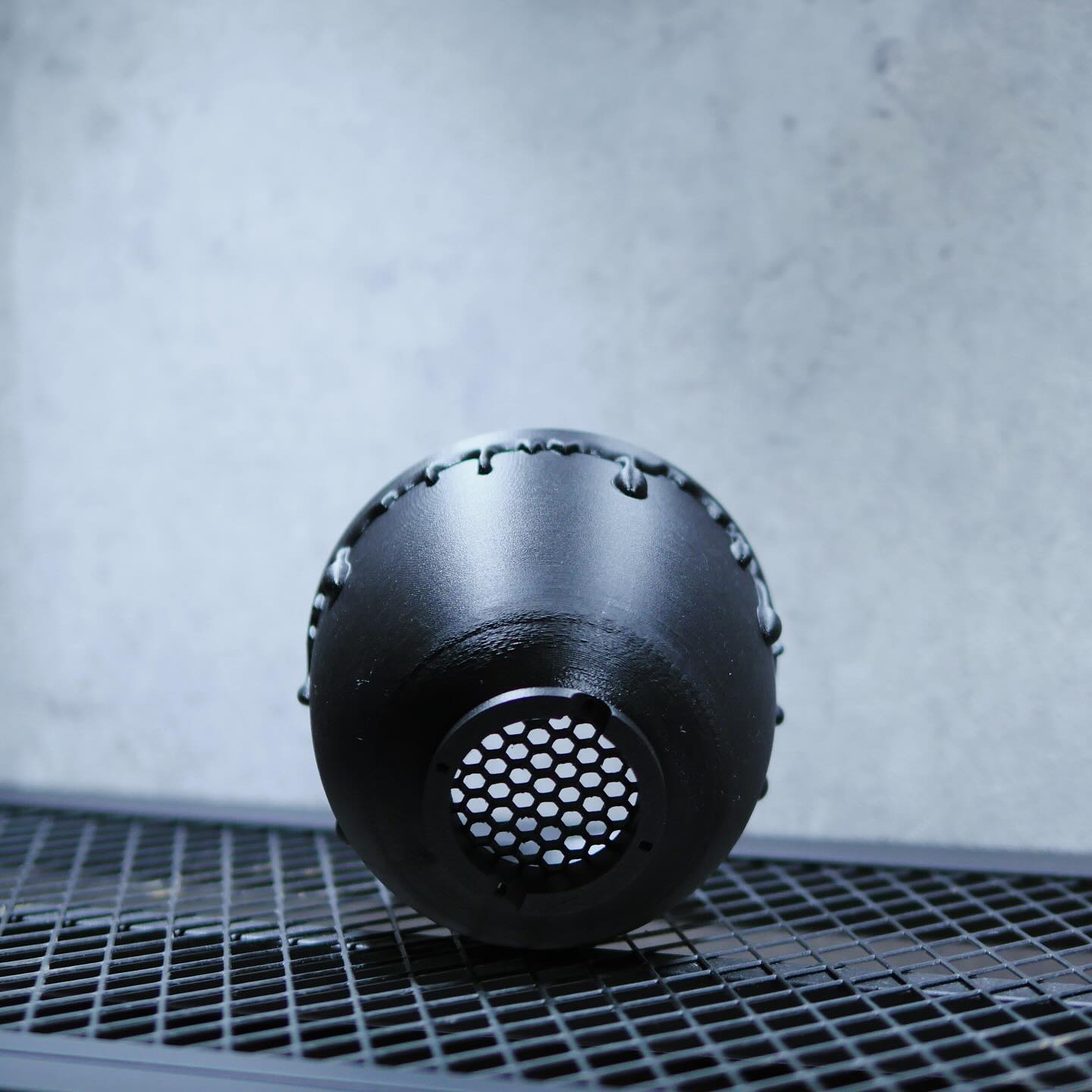 重厚なブラックの質感と、直線と曲面が交差するミニマルなフォルムが